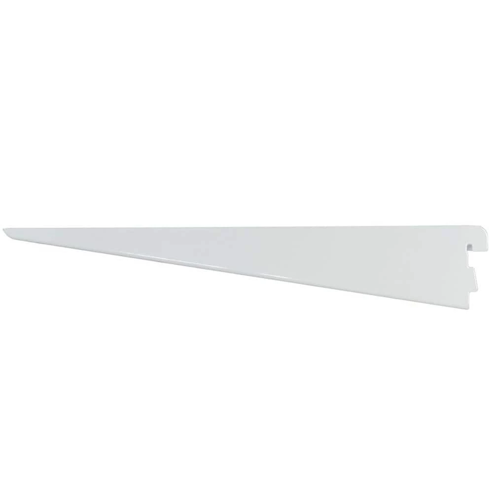 This 14-1/2 in. White Twin Track Bracket from Rubbermaid is perfect for heavy-duty shelving. Supporting up to 225 lbs., the bracket can be moved up or down along an upright to help meet your personal storage needs. No tools are needed to attach the bracket; it fastens into a wall through a double slotted upright with wood screws (upright and screws sold separately).