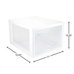 - Durable storage solution is ideal for garages, basements, attics, and the clear base and lid allows for quick viewing from any angle and easier retrieval of stored items