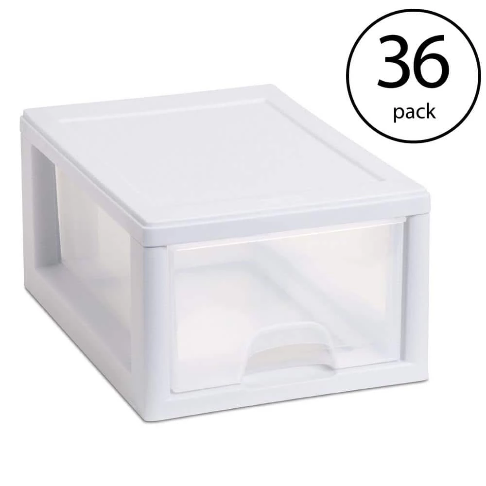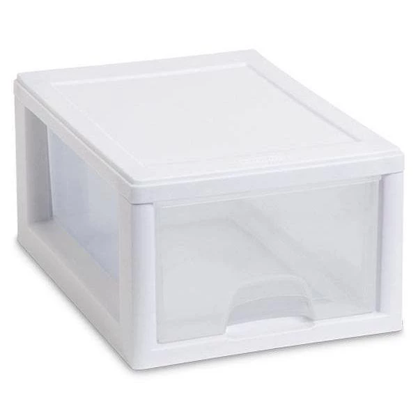 The Sterilite Small Drawer is an ideal solution for organizing shoes, as well as other small items around the home. The comfortable handle allows the drawer to be pulled out easily, and drawer stops prevent the drawer from sliding all of the way out of the frame. Multiple drawers stack on top of each other, creating a modular and customized storage solution. (12 7/8 in. L x 8 7/8 in. W x 6 in. H) – Accommodates most sizes of shoes – Secure Tabs that allow several units to link together to create modular storage solution – White frame with clear drawer br.