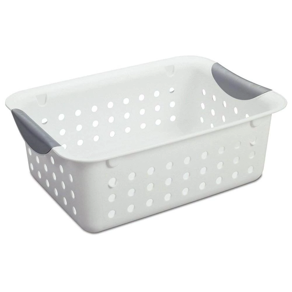 The Small Ultra Basket is ideal for organizing countertops, kitchen cabinets, home office space, and shelving around the home. The contoured handles allow for comfortable transporting, and the smooth finish is easy to clean. Item is ideal for storing CDs, DVDs, bathroom, or office supplies. The Sterilite Small Ultra Basket is ideal for the bathroom or garage. Really most anywhere a person needs to control some clutter. This Small ultra-basket is ideal for a wide variety of uses. The Ultra basket is also durable with its titanium insert handles (11-1/8 in. L x 8 in. W x 4 in. H).