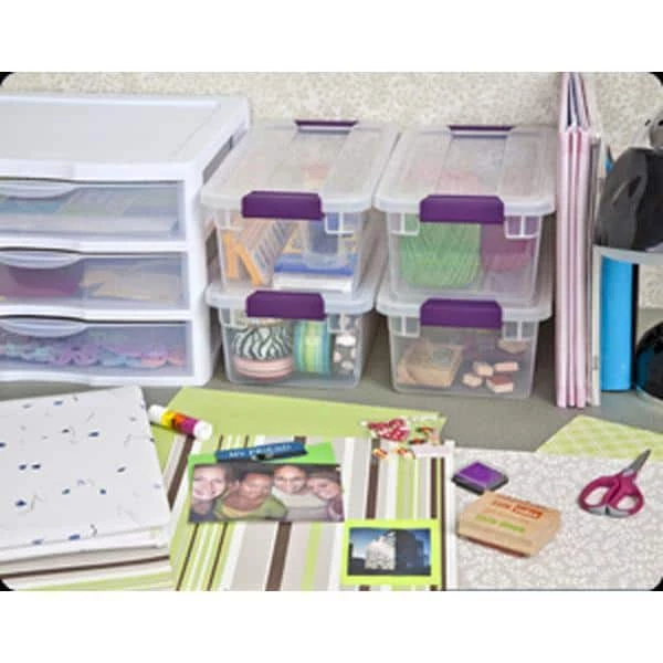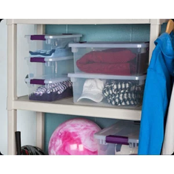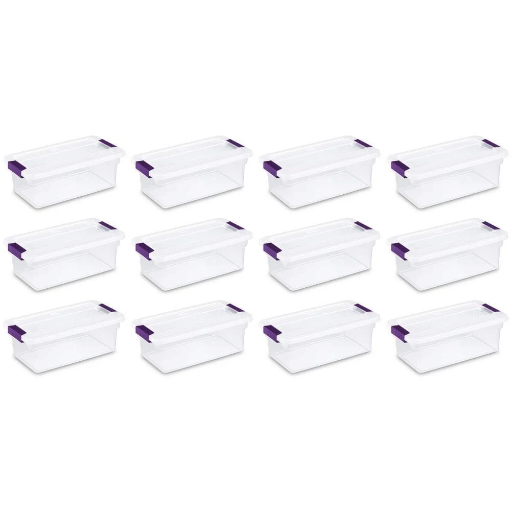 Organize your closet, office, craft supplies, or kid’s playroom, putting everything in its proper place with the help of this 12-Pack of Sterilite 6-Quart Plastic ClearView Latch Box Storage Container Totes. Keep yourself organized with this set of 12 contemporary and versatile 6-quart storage totes. Ideal for storing shoes, toys, crafts, and other small items around the home, these bins conveniently fit on 16-inch wire shelving making them ideal for closet organization. The clear base and lid allow contents to be easily identified from any angle. With color-accented latches that secure the lid to the base, you’ll be able to have peace of mind that your stored items are secure. The latches are easy to open and close for convenient access to your belongings and the indexed lids allow the totes to be neatly stacked on top of each other making efficient use of vertical storage space. The overall dimensions of these totes are 14.12 long by 7.75 wide by 4.87 inches high. Enjoy the contentment full organization can bring to your home with the 12-Pack of 6-Quart Plastic ClearView Latch Box Storage Container Totes from Sterilite.