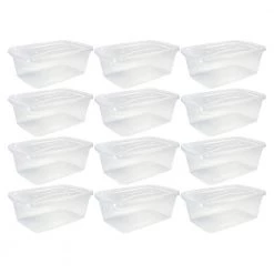 When clutter threatens to take over your space, reign it in with help from this 12-Pack of Rubbermaid Cleverstore 6-Quart Plastic Storage Containers. These clear storage bins make it easy to organize your things and see exactly where they are. With a 6-quart capacity, these clear storage containers are great for storing small items like art supplies, kitchen spices, hats and gloves, toys, office supplies, and more. The storage box’s shape is ideal for use as a shoe box too. You can easily see what you stored inside the bin thanks to its clear sides and lid. Each transparent plastic storage container comes with a lid for easy transport and convenient storage. Just snap the lid into place and your items stay safe inside the storage tote. The lid is recessed so you can easily stack storage bins in your closet, garage, or store room. Keep your items organized with this 12-Pack of Rubbermaid Cleverstore 6-Quart Plastic Storage Containers.