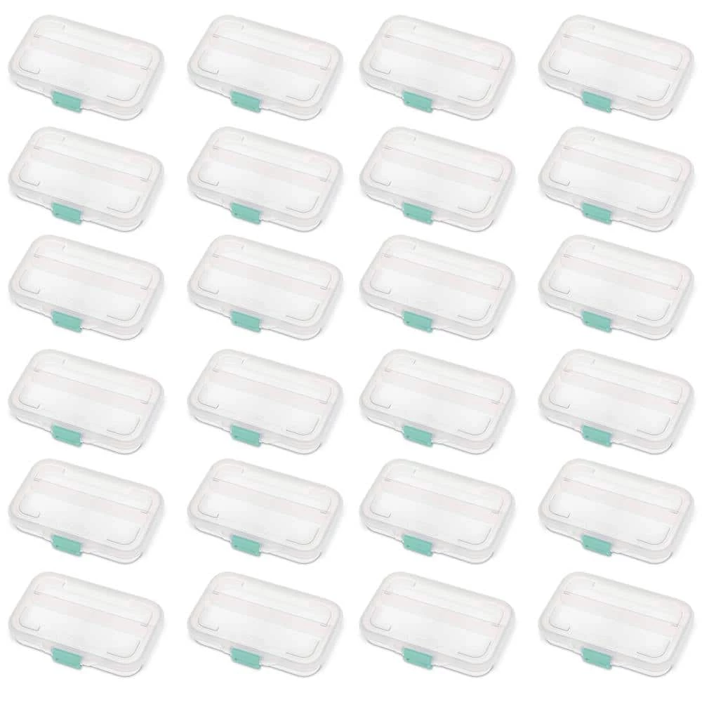 Storage organization shouldn’t be complicated. Simplify your storage with the 24-pack of Sterlite Convenient Small Divided Clear Storage Boxes with Colored Latch. Bid adieu to inconvenient clutter and say hello to the ideal grab-and-go storage solution, measuring 8.5 in. long, 5.62 in. wide, and 1.5 in. tall. Perfect for school, office, crafting, health, beauty supplies, and more, these storage boxes will help you organize any space. Clear base container and latching lid allow for quick and easy identification of stored contents. Save space and declutter your rooms with the slim box shape that fits easily into most desks and drawers, as well as backpacks and briefcases. These on-the-go storage solutions will ensure that supplies are easy to access and adds convenience to today’s hectic lifestyles. Accommodate supplies for all ages from grade school to adults. Make your life easier with the 24-pack of Sterilite Convenient Small Divided Clear Storage Box with Colored Latch.