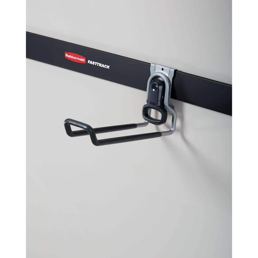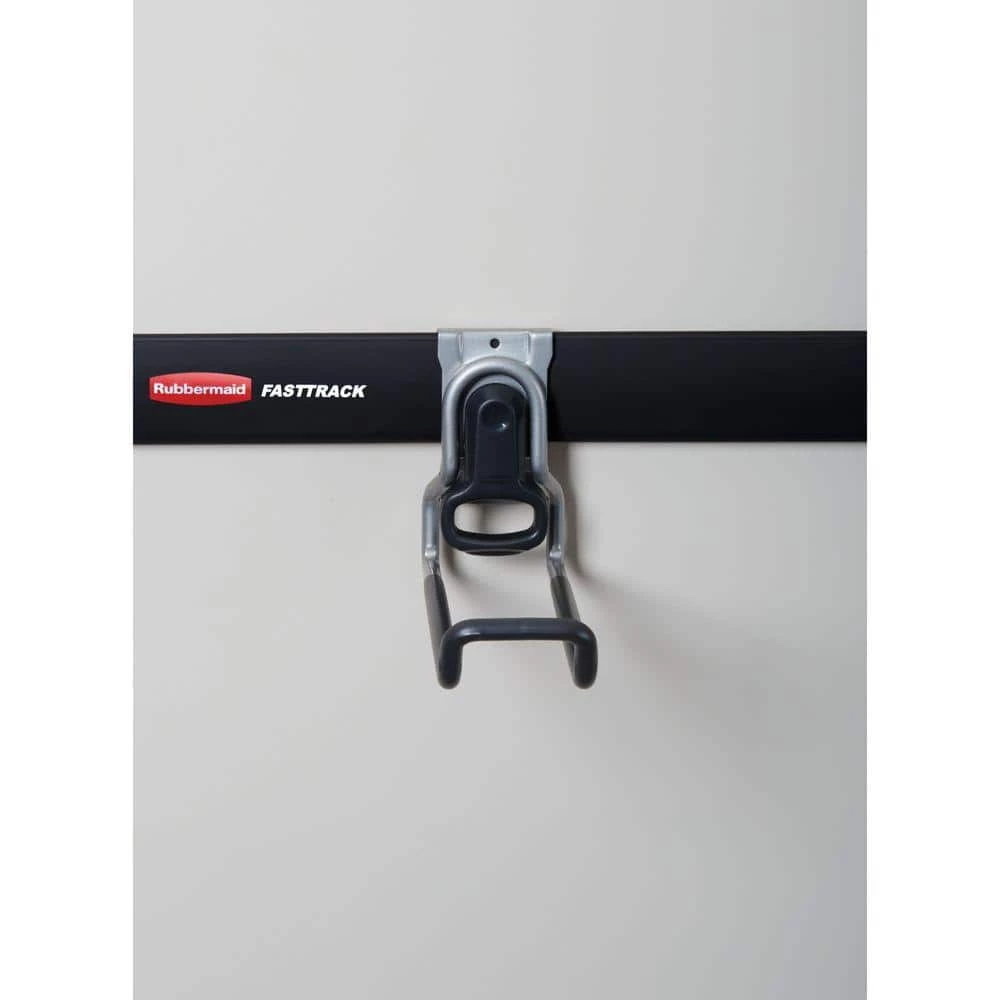 If you find that your ladder gets in the way between projects, the Rubbermaid FastTrack Ladder Hook is the perfect solution. You can store your ladder up and away by snapping the hook onto the FastTrack rail or mounting it directly to the wall. The hook supports up to 50 lbs., and the ability to snap the hook on and off the rail adds flexibility to your garage organization.