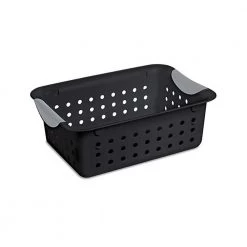 4 in. D x 11 in. H x 8 in. W Black Plastic Cube Storage Bin by Sterilite
