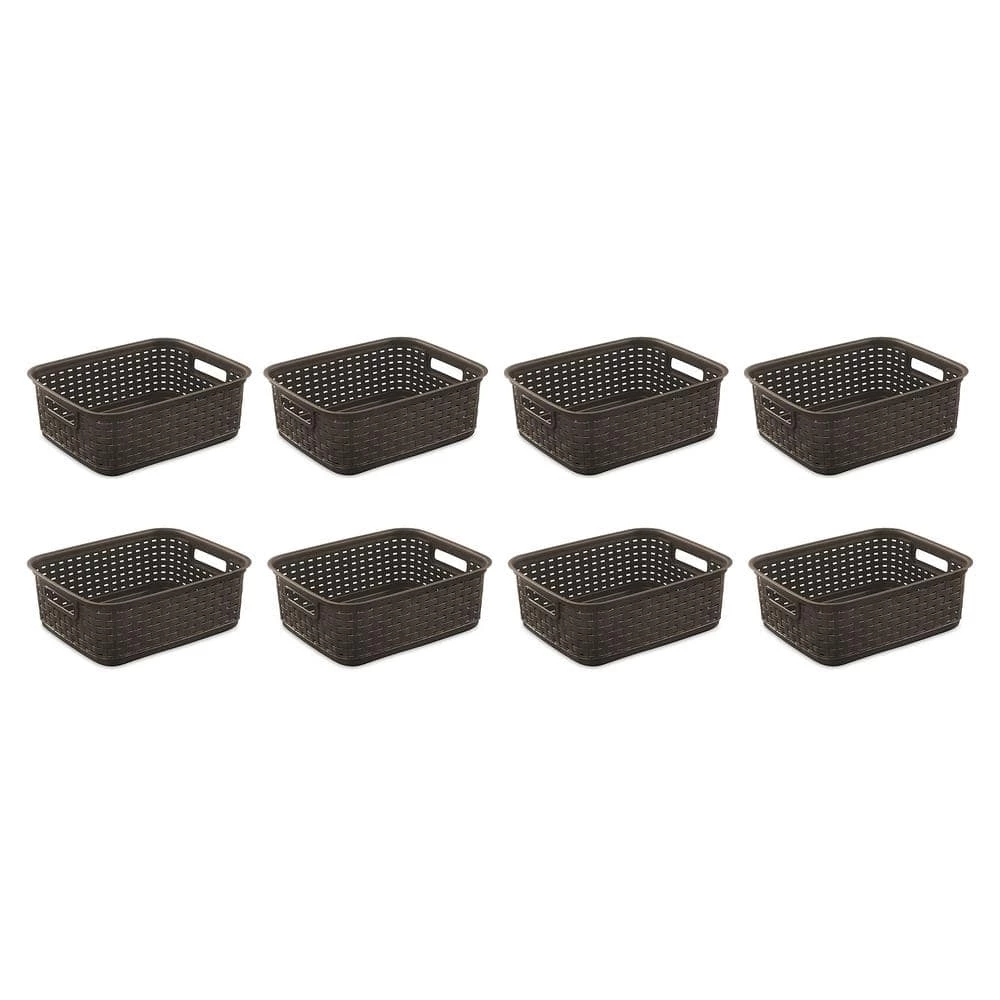 Storage organization shouldn’t be complicated. Simplify your storage with the 8-pack Sterilite Small 11-Inch Long Weave Home Storage Basket Organizer. Measuring 11.5 in. long, 8.75 in. W, and 4 in. tall, the small weave basket combines the decorative look of wicker with the convenience of easy-to-clean, durable plastic. The weave pattern adds a fashionable touch to every day storage for items kept out in the open. Rectangular in shape, this basket is ideal for reducing clutter on countertops, pantries, bookshelves, entertainment centers and more. When used with other storage baskets, this item can create a customized storage solution that fits any household needs. A reinforced rim provides a great gripping location for lifting and transporting contents. Make your life easier with the 8-pack of Sterilite Small 11 in. Long Weave Home Storage Basket Organizer.
