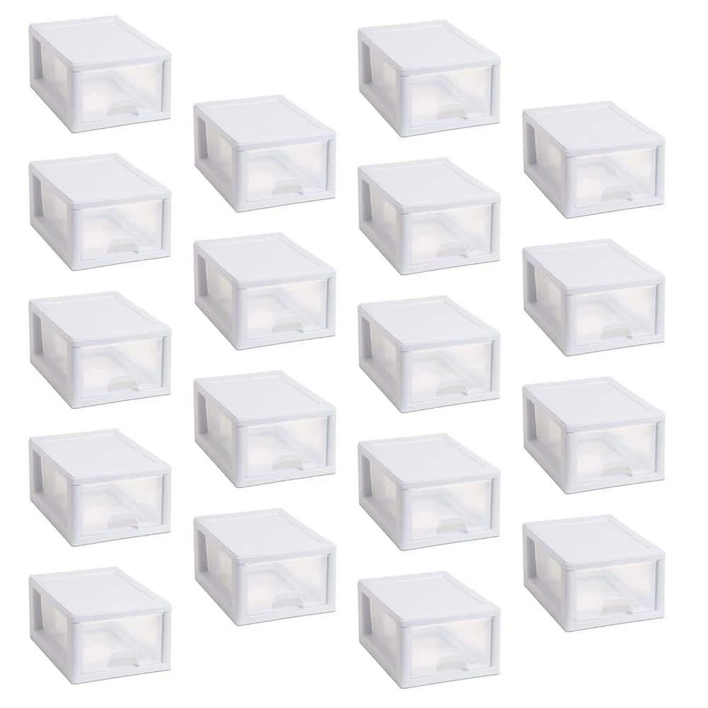 We’ve all got heaps of stuff that we need to organize. Organize your heap with the Sterilite Small Drawer. This storage unit is an ideal solution for organizing shoes, as well as other small items around the home. The comfortable handle allows the drawer to be pulled out easily, and drawer stops prevent the drawer from sliding all of the way out of the frame. Multiple drawers stack on top of each other, creating a modular and customized storage solution. This small storage unit is great for use in offices, bedrooms, offices, and dorms. Maximize your storage space with this terrific storage set.