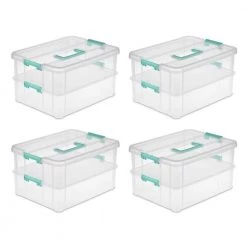 Convenient Home 2-Tiered Layer Stack Carry Storage Box, Clear (4 Pack) by Sterilite
