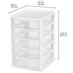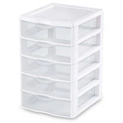7.25 in. x 11 in. Clearview Small 5-Drawer Desktop Storage Unit, White (16-Pack) by Sterilite