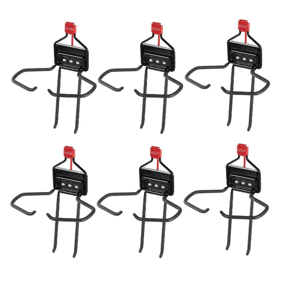 Protect your expensive power tools from damage with the Rubbermaid Storage Shed Space-Saving Large Mounted Power Tool Holder Accessory. This long-lasting organizer keeps your favorite power tools looking and operating as good as new. The sturdy, heavy-duty metal design supports up to 20 lbs. of weight, allowing you to get creative with your storage. Whether you’re using it to hang your drill, weed-whacker, chainsaw or other hardware tools, make the most of your limited storage area. Easily mount by inserting and aligning the included adapter into the wall opening. Fully secure in place to begin maximizing your shed storage. For large items, pinch together the 2 middle arms and lower to stabilize. Compatible with most Rubbermaid sheds, the holder does not fit shed models 1S84, 1S85, 3749 and 3746. Customize your storage to meet your every storage need with Rubbermaid Storage Shed Mounted Power Tool Holder Accessory. (6-Pack).